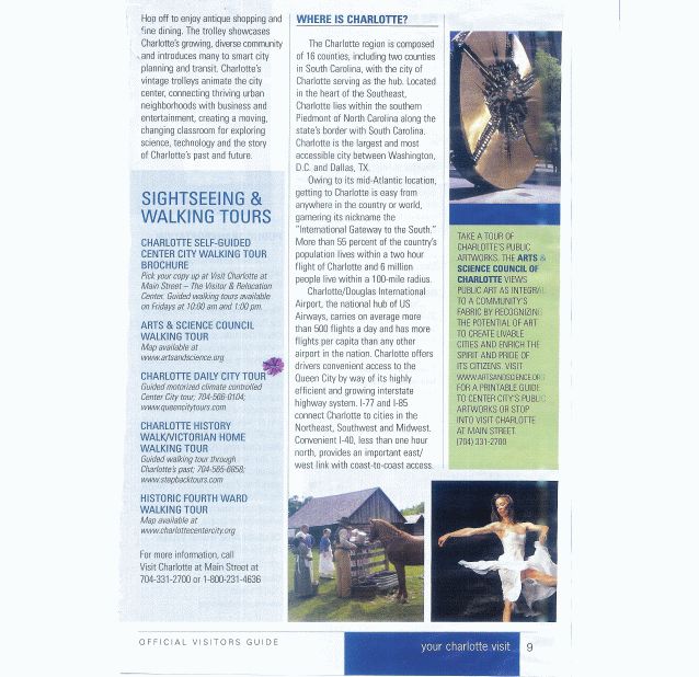 This tour was featured and highlighted in the official Charlotte Visitors Guide!