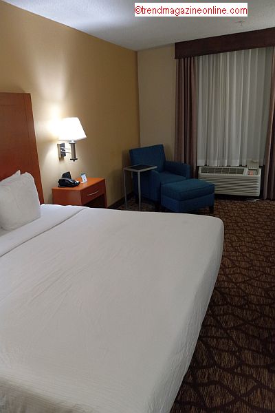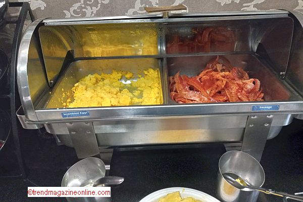 Wi-Fi access was easy and hassle-free, requiring no password, and connected quickly on the first attempt. The alarm clock/radio was located on the door-side of the bed, easy to reach. The hotel is entirely non-smoking, with a designated smoking area on the back patio near the main lobby. Additional amenities included a gym and a business center, both positives for business and leisure travelers alike. Breakfast the following morning was a pleasant experience. A friendly attendant kept the area tidy and welcoming. Offerings included fresh fruit, strawberry jam, oatmeal, fluffy scrambled eggs, bacon, wheat toast, and a juice machine with apple juice, which was just okay. The dining area was on the smaller side, but manageable. One small oversight was the absence of a “Do Not Disturb” door placard, something frequent travelers tend to notice.